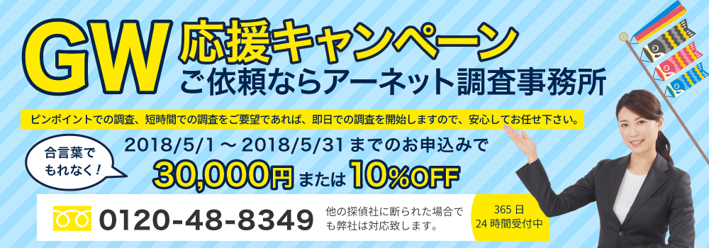 may_campain│浮気・不倫調査の専門アーネット調査事務所