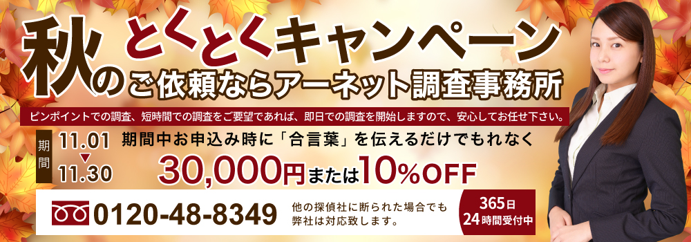 アーネットの11月キャンペーン│浮気・不倫調査の専門アーネット調査事務所